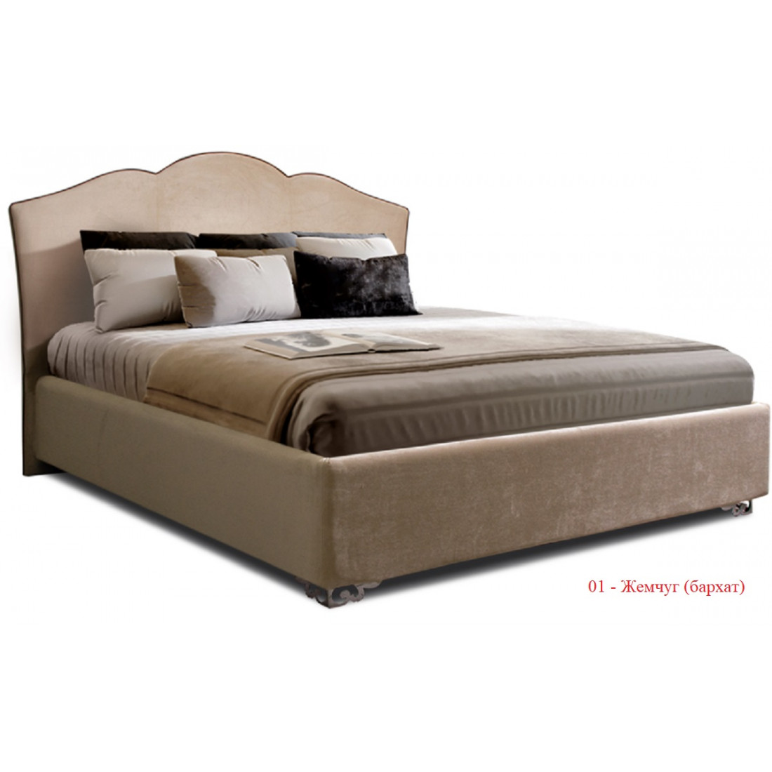 Кровать «Lotos» обтянута бархатом итальянского производства. Для выбора Вам доступно два цветовых решения:«шоколадный ликер» (темный вариант) и «жемчужный берег» (светлый вариант):