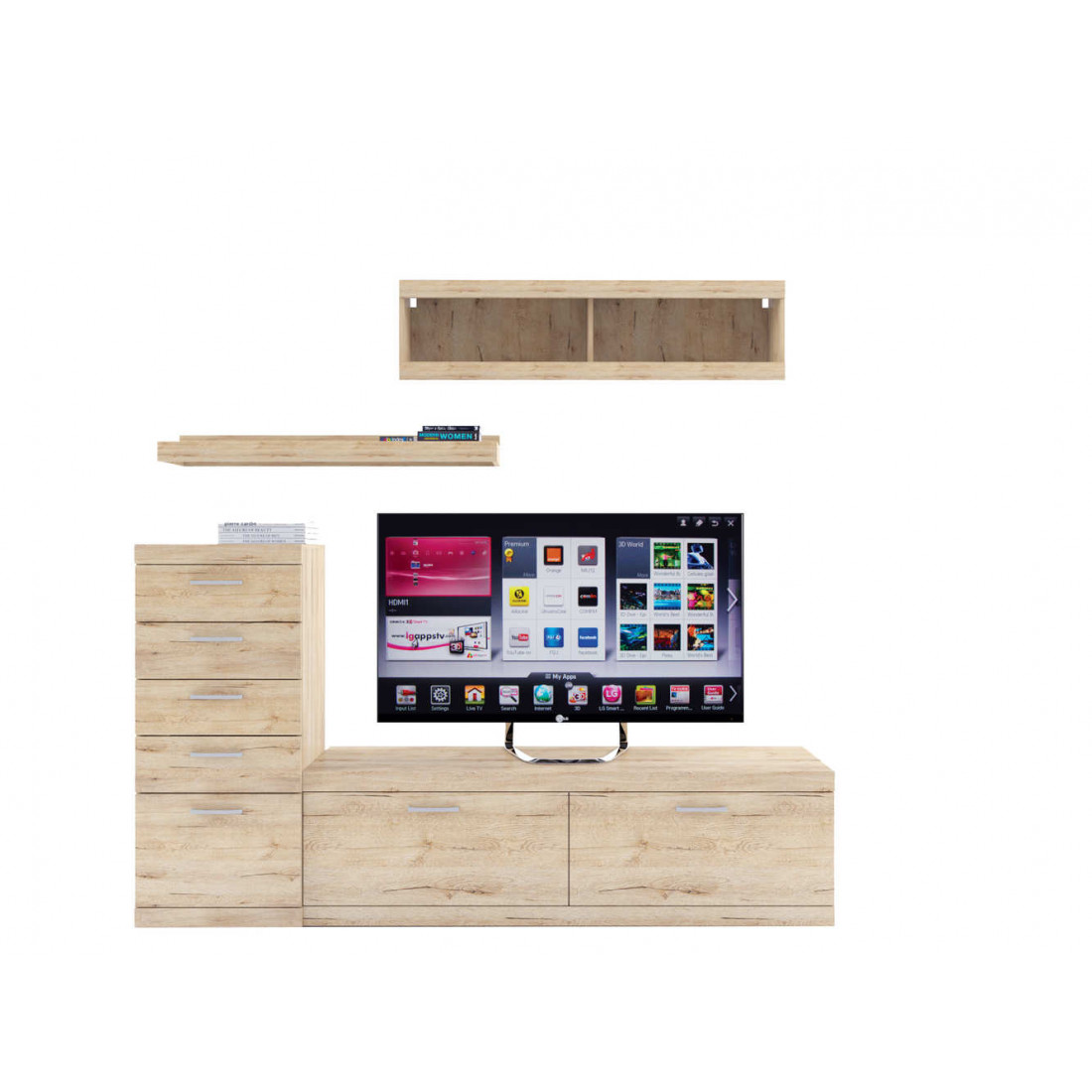 - 4 варианта тумб RTV с выдвижными ящиками на шариковых направляющих. 2 размера надставных полок для RTV-тумб (полка TVB и полка TV), позволяющих установить выше телевизор. Варианты навесных полок, соответствующих по размеру тумбам для телевизора. Тумба RTV 2S2NL имеет глубину 351 мм, что позволяет составить модули, имеющие такую же глубину, в одну линию без выступающих элементов.