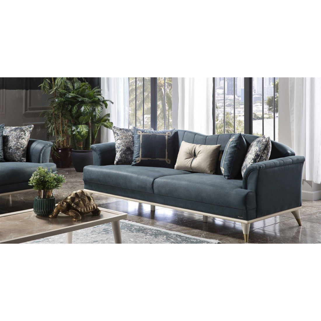 Трехместный диван "Monreal" выполнен в современном стиле, а его цветовые решения подойдут как для светлого интерьера, так и для темного. Современные вертикальные линии расположились на внутренних сторонах подлокотников и спинки. В комплекте идут пять великолепных подушек в разных исполнениях. Изделие покрыто невероятно мягкой и легко очищающийся тканью, а высокие ножки помогут упростить уборку в доме. Диван при необходимости без труда может превратиться в комфортную и просторную кровать.